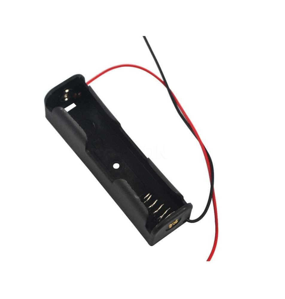 The 1-Cell Battery Holder is designed to hold a single AA-size battery, supplying 1.5V (alkaline) or 1.2V (NiMH/NiCd) depending on the cell used. It features pre-attached wire leads for easy integration into breadboards, DIY electronics, or small battery-powered circuits. Its compact design and reliable spring contact ensure consistent electrical connection. Compact 1-cell AA battery holder with pre-attached wire leads, ideal for supplying 1.5V power to LEDs, sensors, microcontrollers, and small-scale DIY electronic projects.