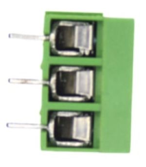 Solder the 3-pin terminal block into a matching 3-hole footprint on a PCB