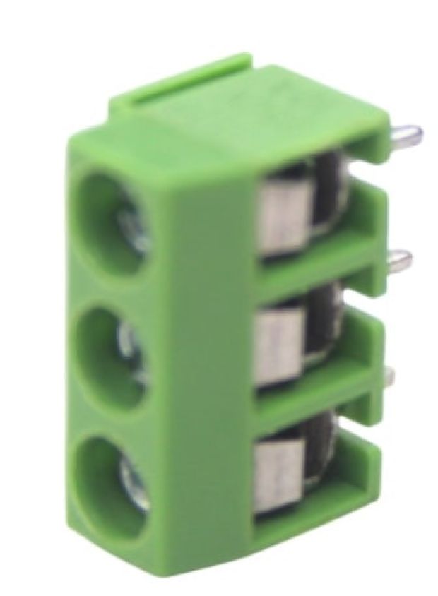 A 3-pin screw terminal block is a modular, tool-assisted electrical connector used to securely connect three wires to a printed circuit board (PCB) using screw clamps. It is often used in power, signal, or sensor connections where reliable, removable wiring is needed. he 3-Pin Screw Terminal Block is a compact, easy-to-use wire connector designed for secure electrical connections on printed circuit boards (PCBs). Ideal for power lines, signal inputs, and sensor outputs.