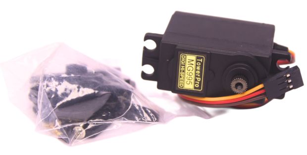 The MG995 Servo Motor is a widely used metal gear servo offering stable torque, precise control, and reliable rotation up to 180°. It accepts standard PWM signals and works seamlessly with Arduino, Raspberry Pi, ESP32, STM32, and other microcontrollers.